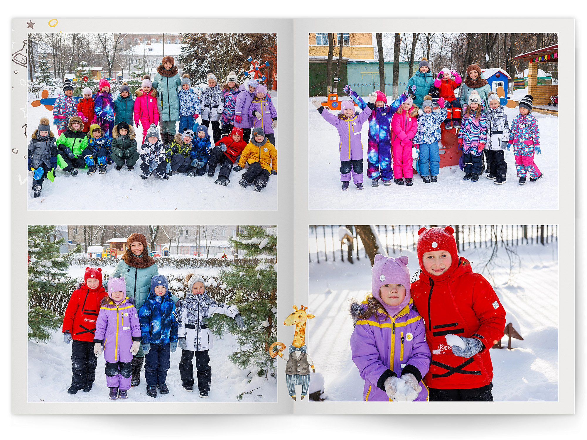Мы предлагаем уникальные выпускные альбомы для детей, оканчивающих детский сад. Мы даем родителям возможность самостоятельно выбрать все фотографии для альбома своего ребенка. Наши профессиональные фотографы проводят съёмку в детском саду, а затем тщательно обрабатывают полученные изображения, чтобы каждая фотография выглядела идеально.
