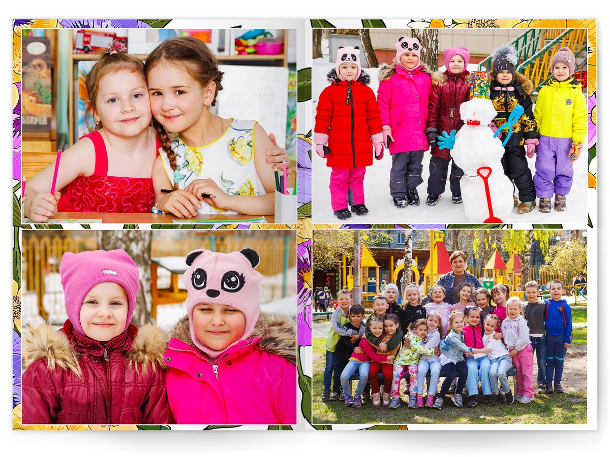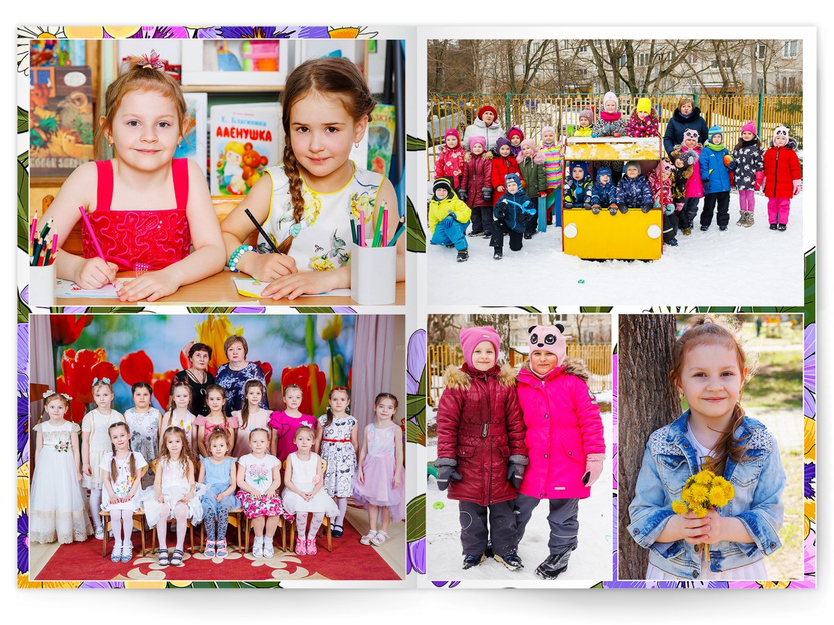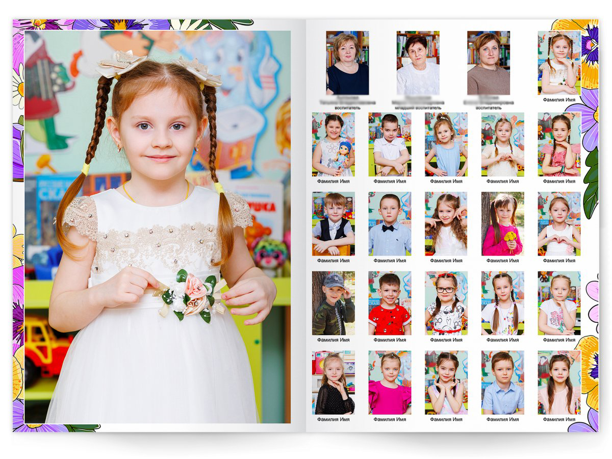 • Портреты всех детей и воспитателей на развороте