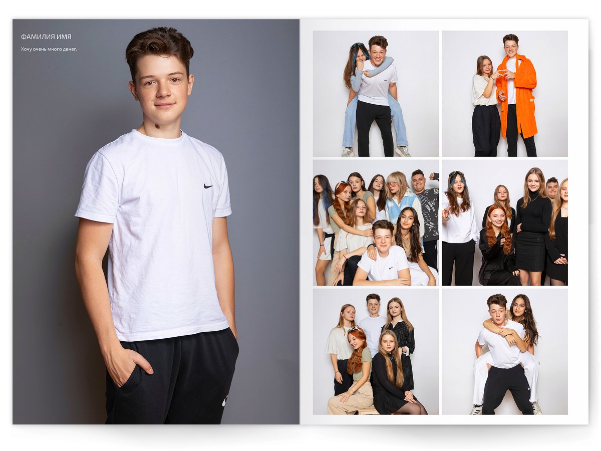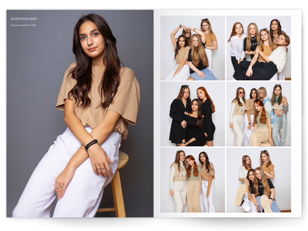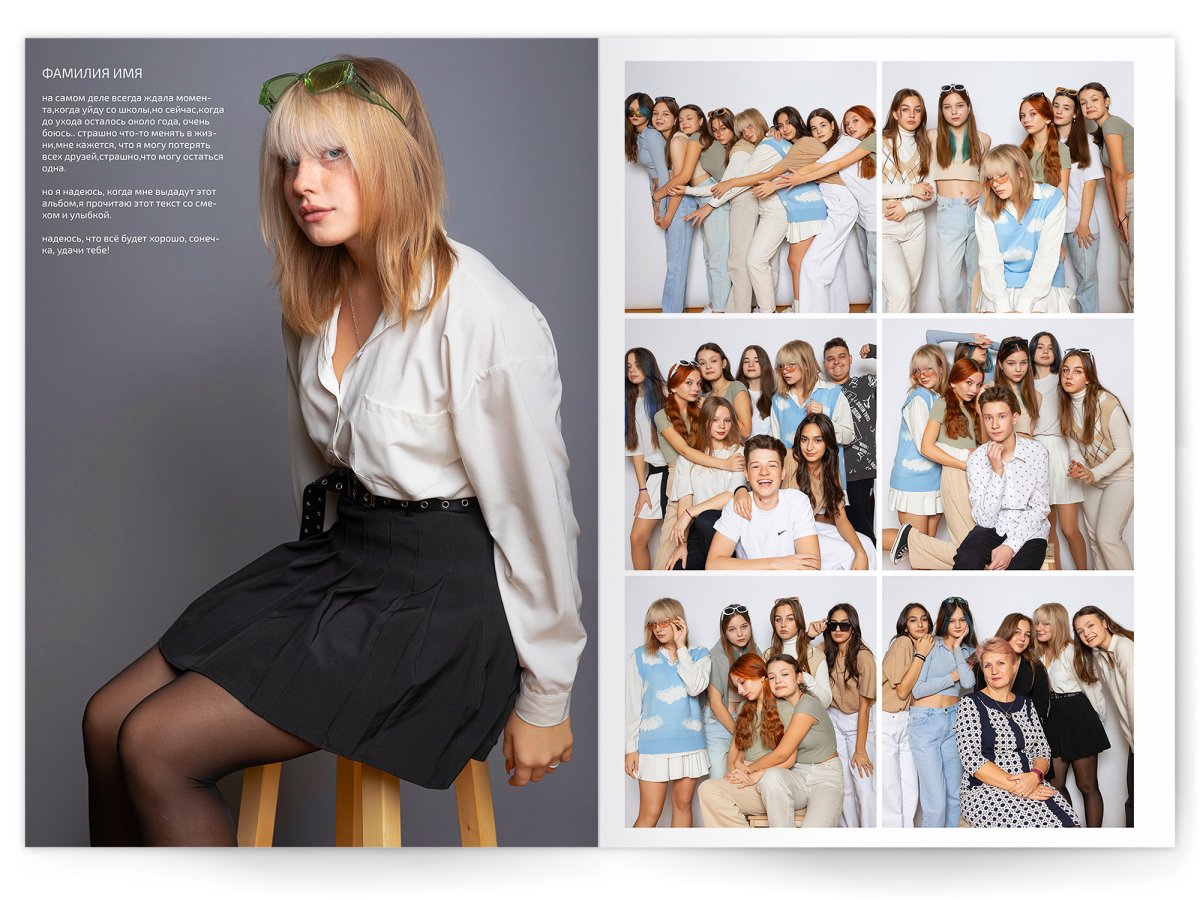 • Съёмка альбома в фотостудии от +750 ₽/человек (точная стоимость зависит от количества учеников и выбранной фотостудии)