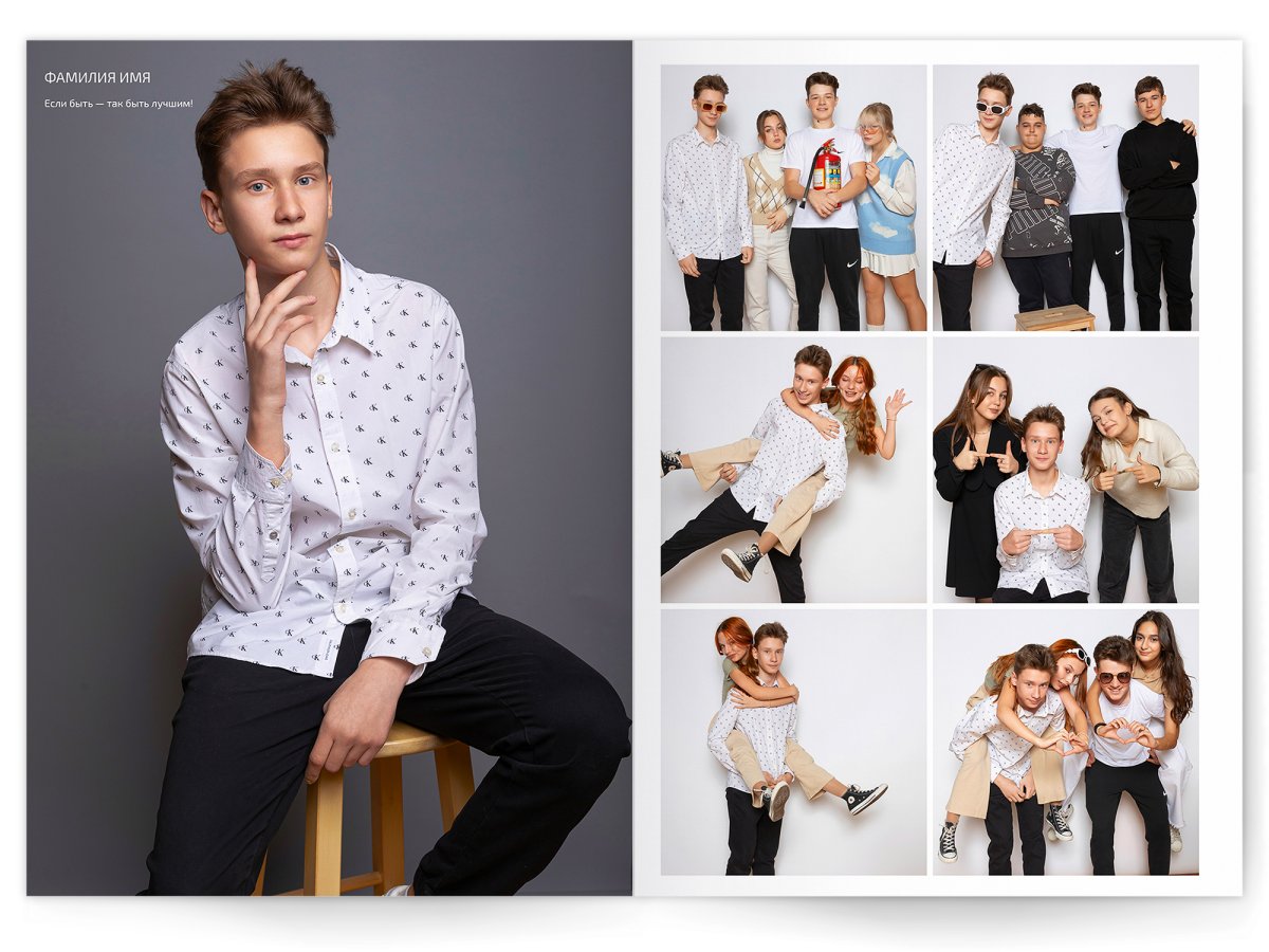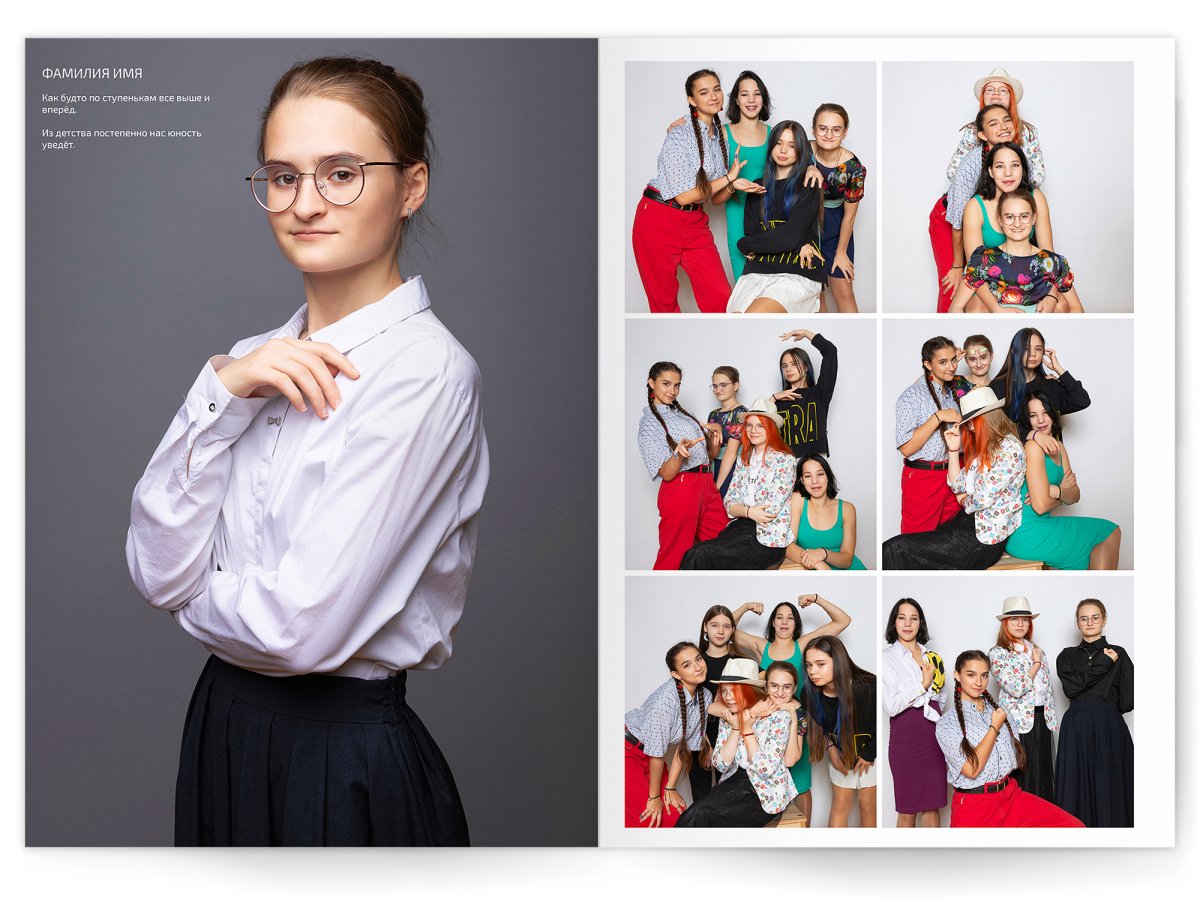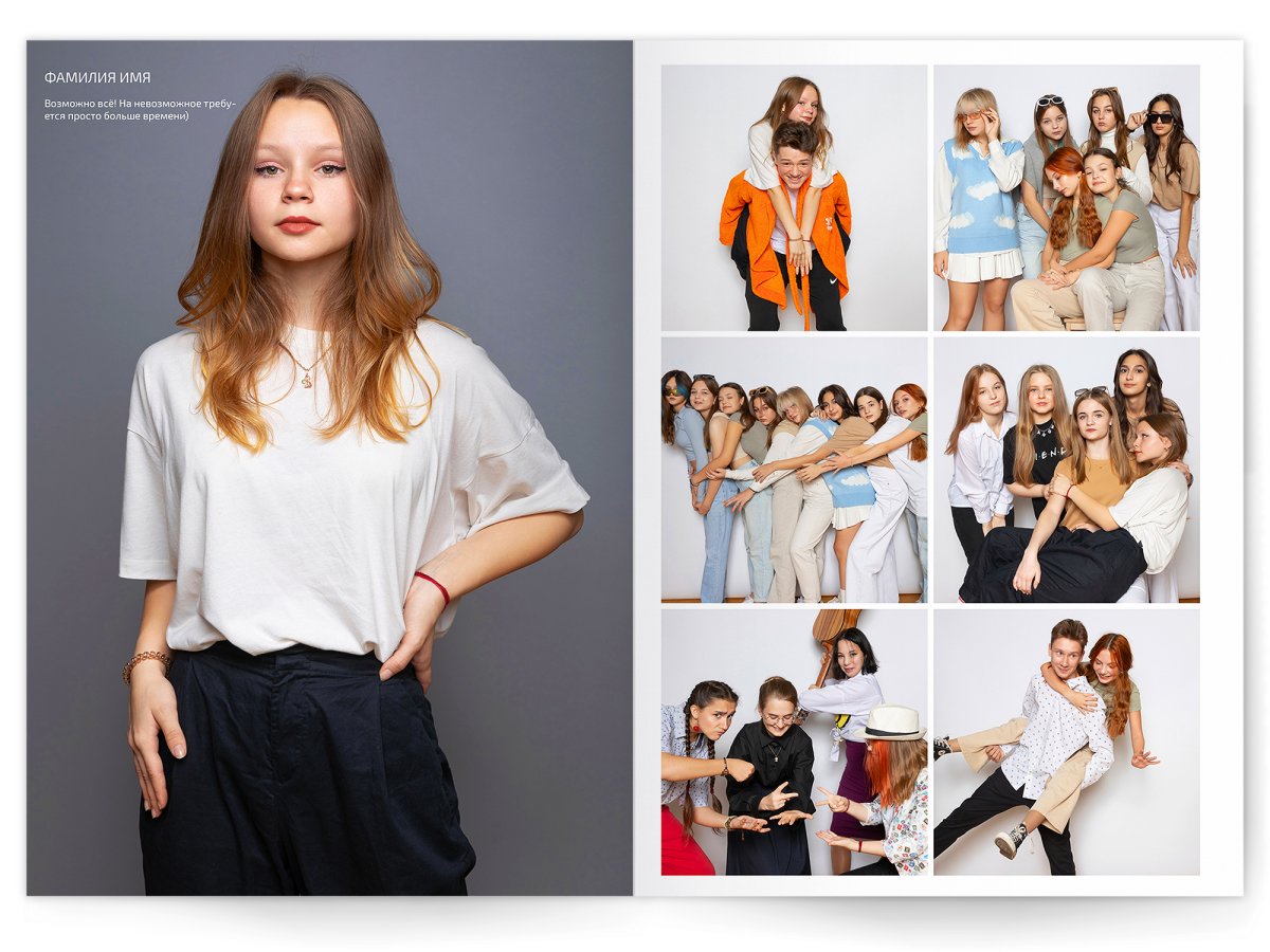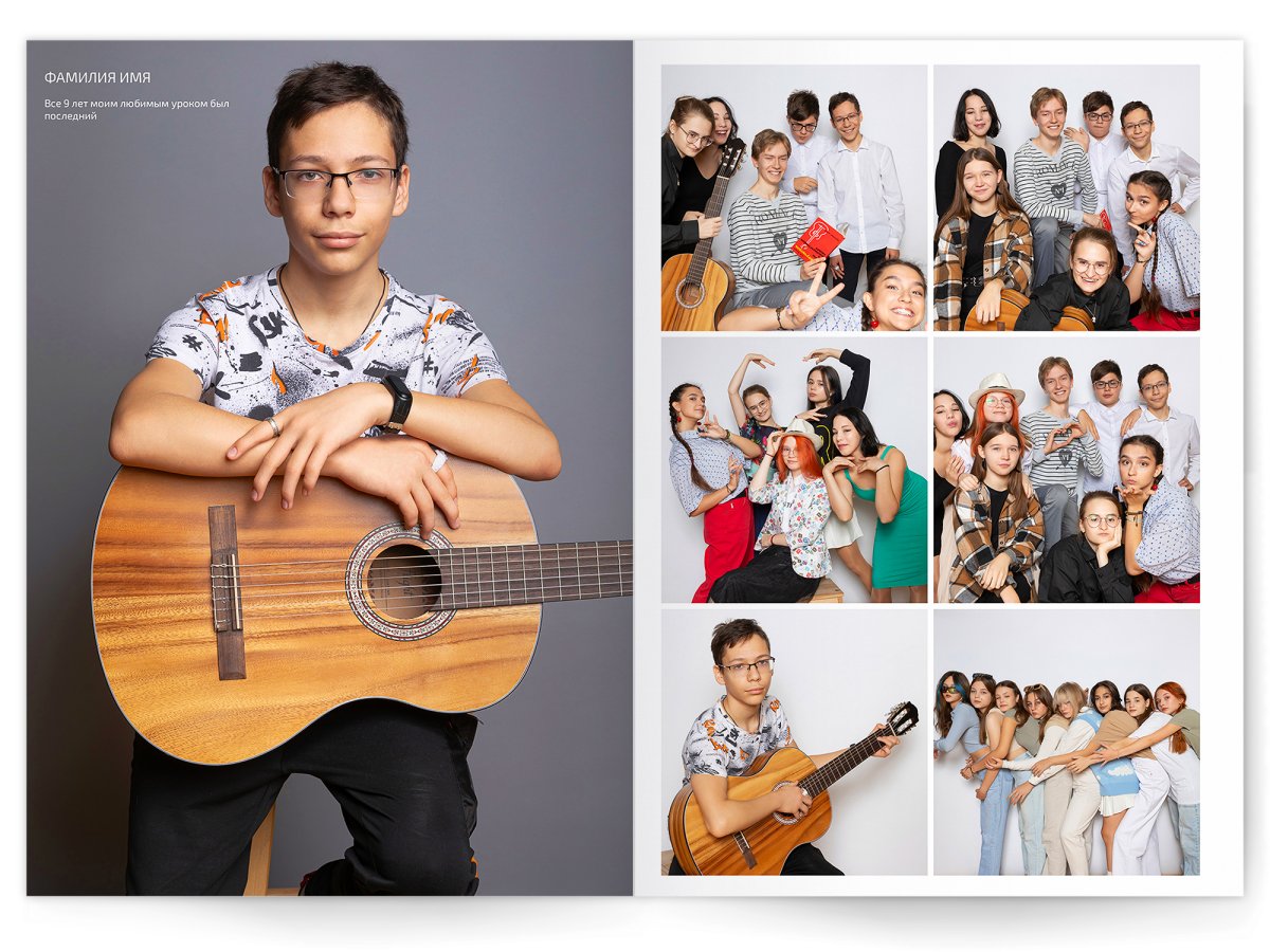 • Съёмка альбома в фотостудии от +750 ₽/человек (точная стоимость зависит от количества учеников и выбранной фотостудии)