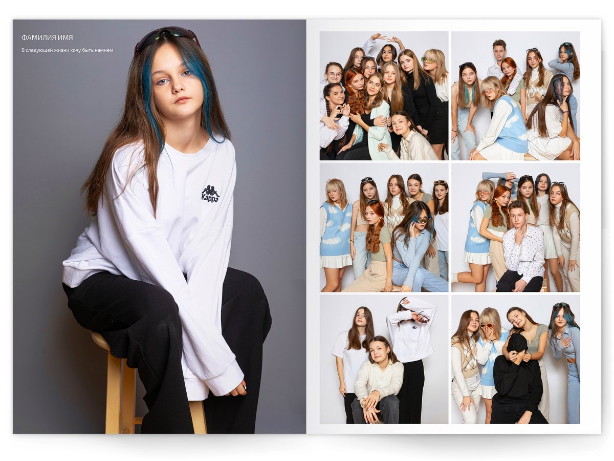 Потому что мы не снимаем «как у всех». Каждый кадр — это маленькое арт-заявление: резкий свет, дерзкие ракурсы, цвет как у лучших fashion-редколлегий. И да — всё это будет снято в вашей школе, а не в студии за три часа езды. Директор не пускает в школу — снимем в студии! Студия оплачивается отдельно.
