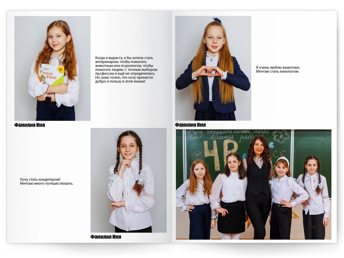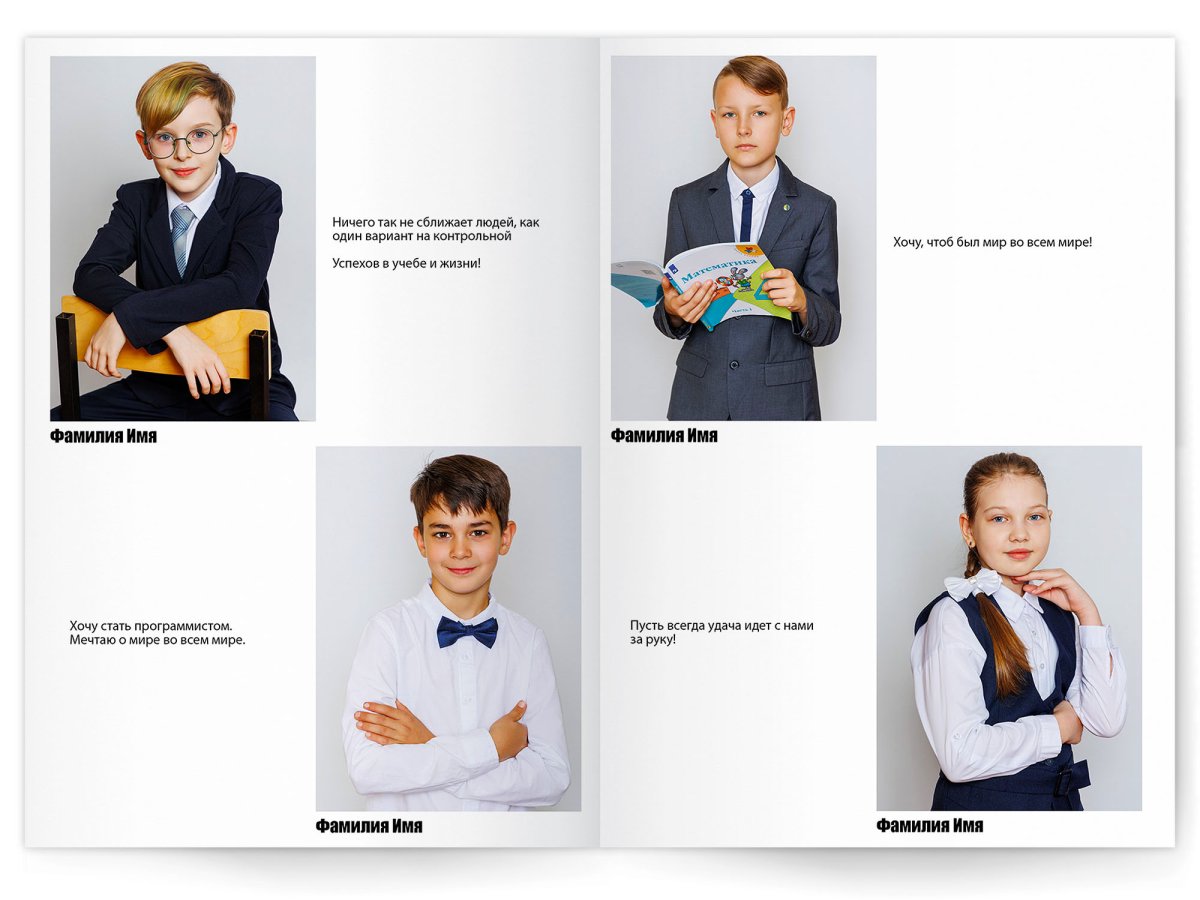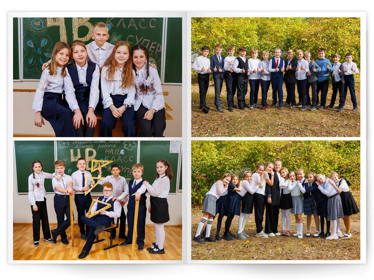 • Съёмка альбома в фотостудии от +750 ₽/человек (точная стоимость зависит от количества учеников и выбранной фотостудии)