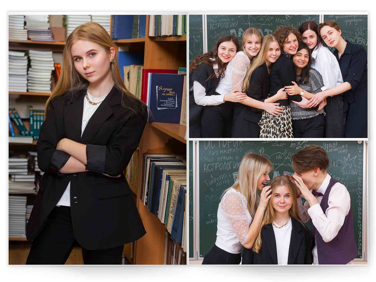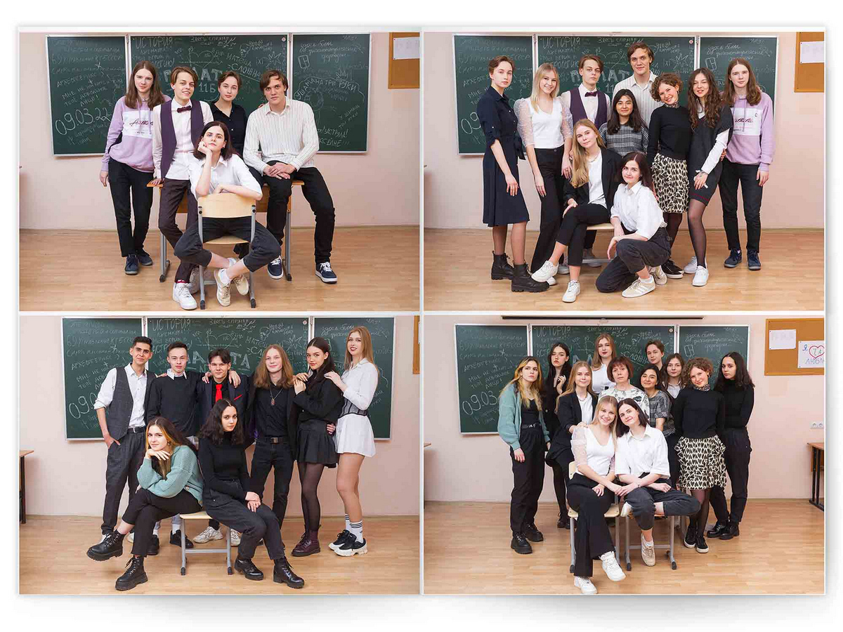 • Съёмка альбома в фотостудии от +750 ₽/человек (точная стоимость зависит от количества учеников и выбранной фотостудии)