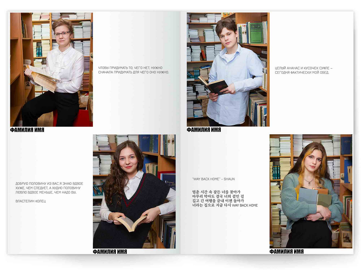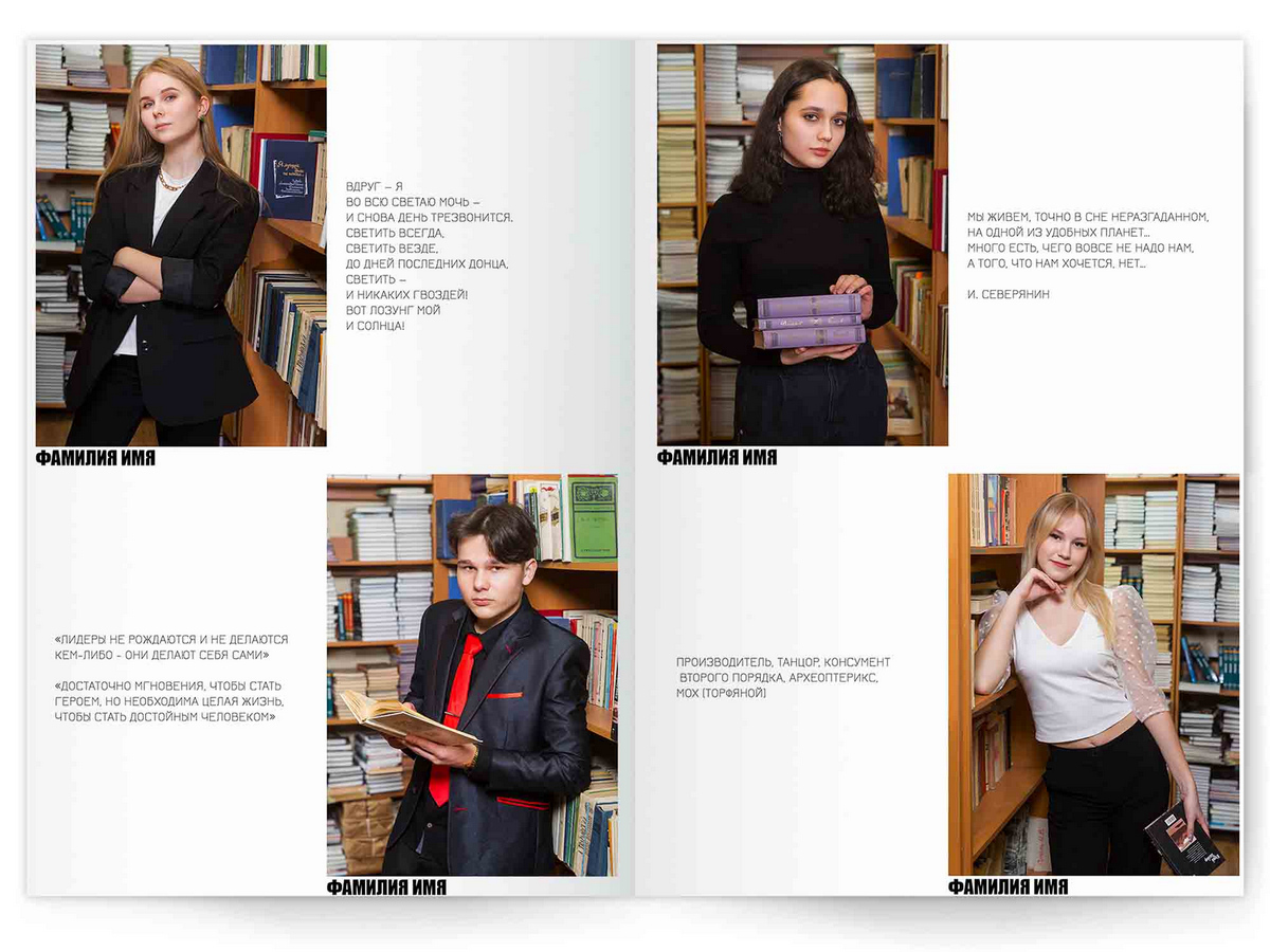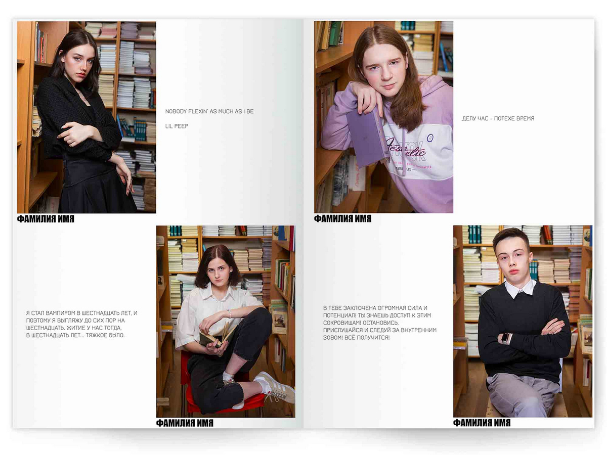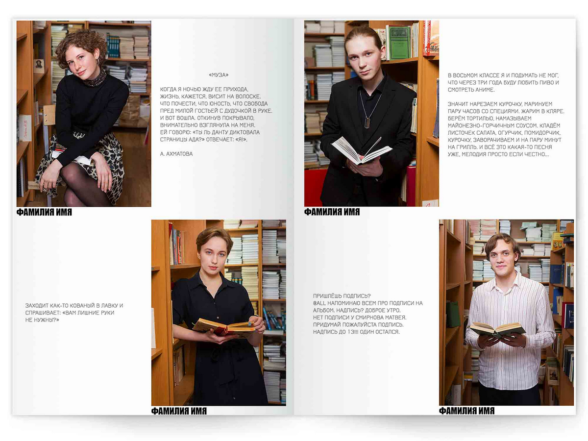 • Портреты всех одноклассников по 2 человека на страницу с историями-заметками