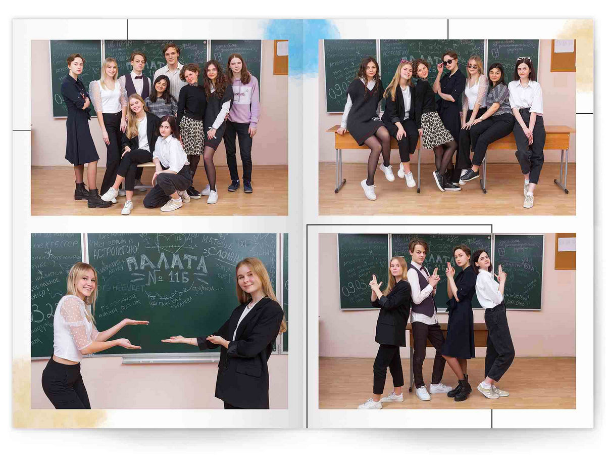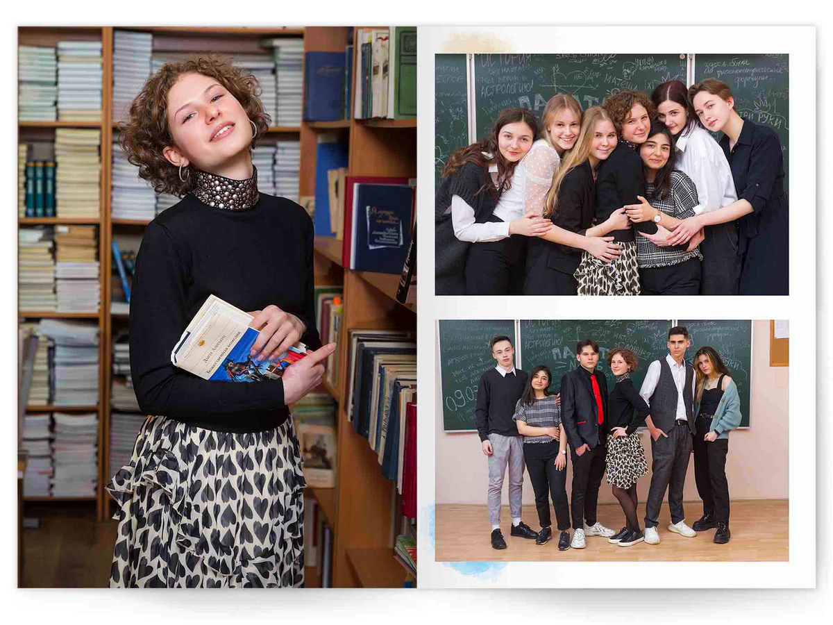 • Съёмка альбома в фотостудии от +750 ₽/человек (точная стоимость зависит от количества учеников и выбранной фотостудии)